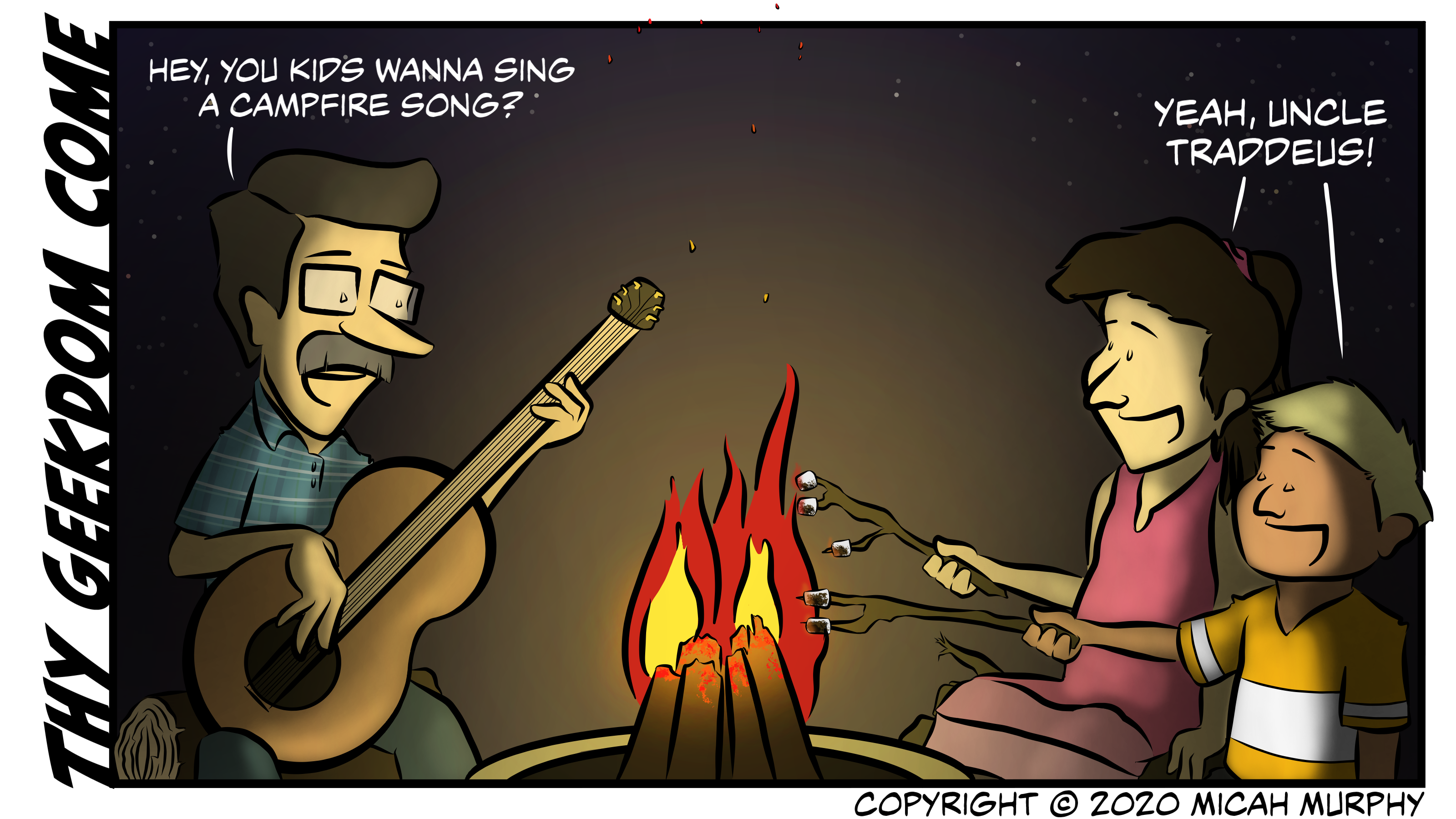 Traddeus Campfire Song 2 by Micah Murphy | Feb 25, 2020 | Archive, Comics | 0 comments Submit a Comment Cancel replyYou must be logged in to post a comment.